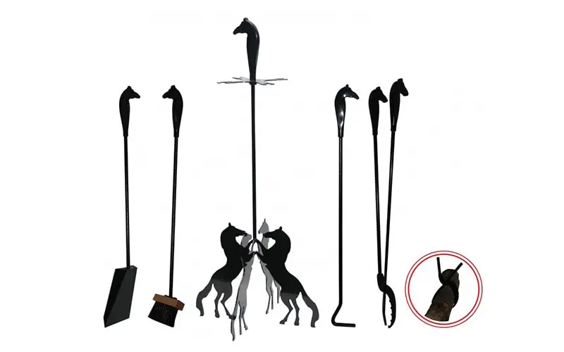 Şömine aksesuarlarının işlevleri aynı olmakla beraber, görünümleri bir birlerinden çok farklı modellerde bulunabilir. At başlı şömine takımı, farklı görünüm ve tasarımı ile işlevinin yanında sap ve alt taşıyıcı ayaklarının uyumu ile standart görünümün dışına çıkarak alternatif seçenek olarak kullanabilirsiniz.
